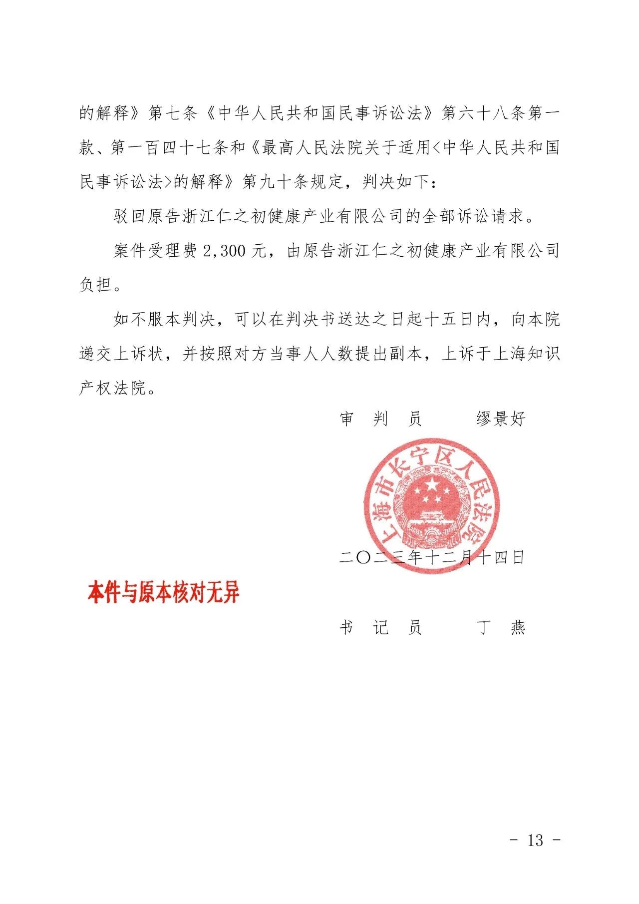 焦作辉知胜诉佳讯 | “仁之初健康”著作权及不正当竞争纠纷案,法院:驳回全部诉讼请求!