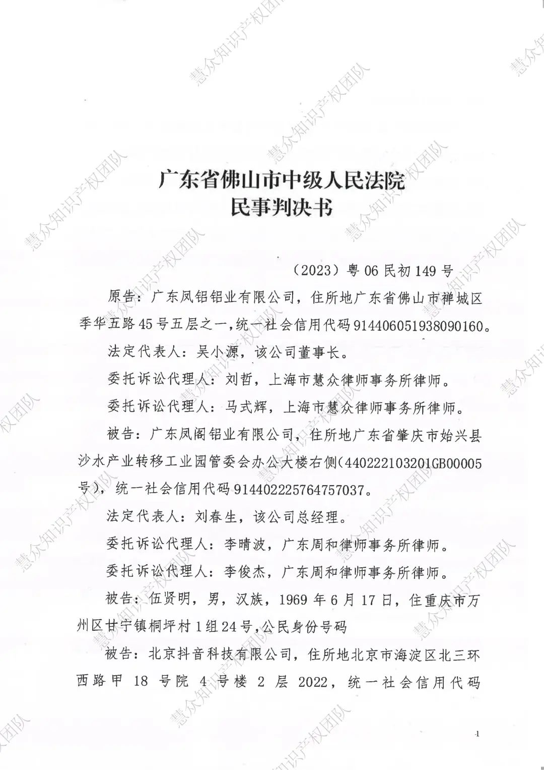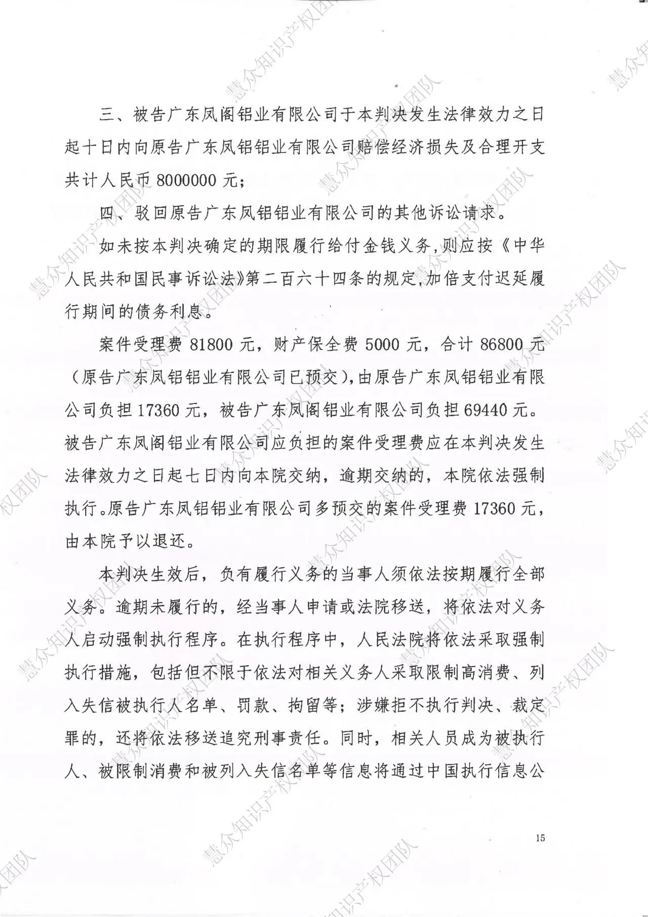 焦作判赔800万!辉知队代理“凤铝”商标维权案胜诉